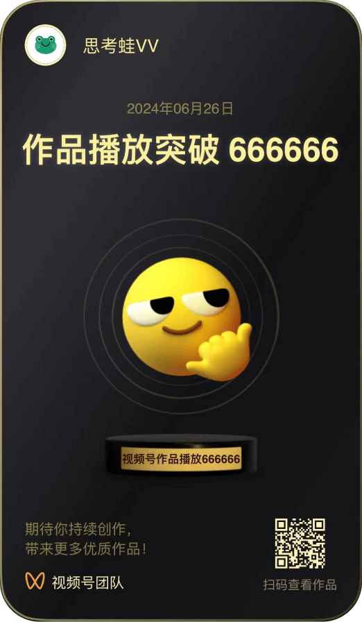 思考蛙在视频号的单个作品突破 66 万播放,涨粉1.5万。